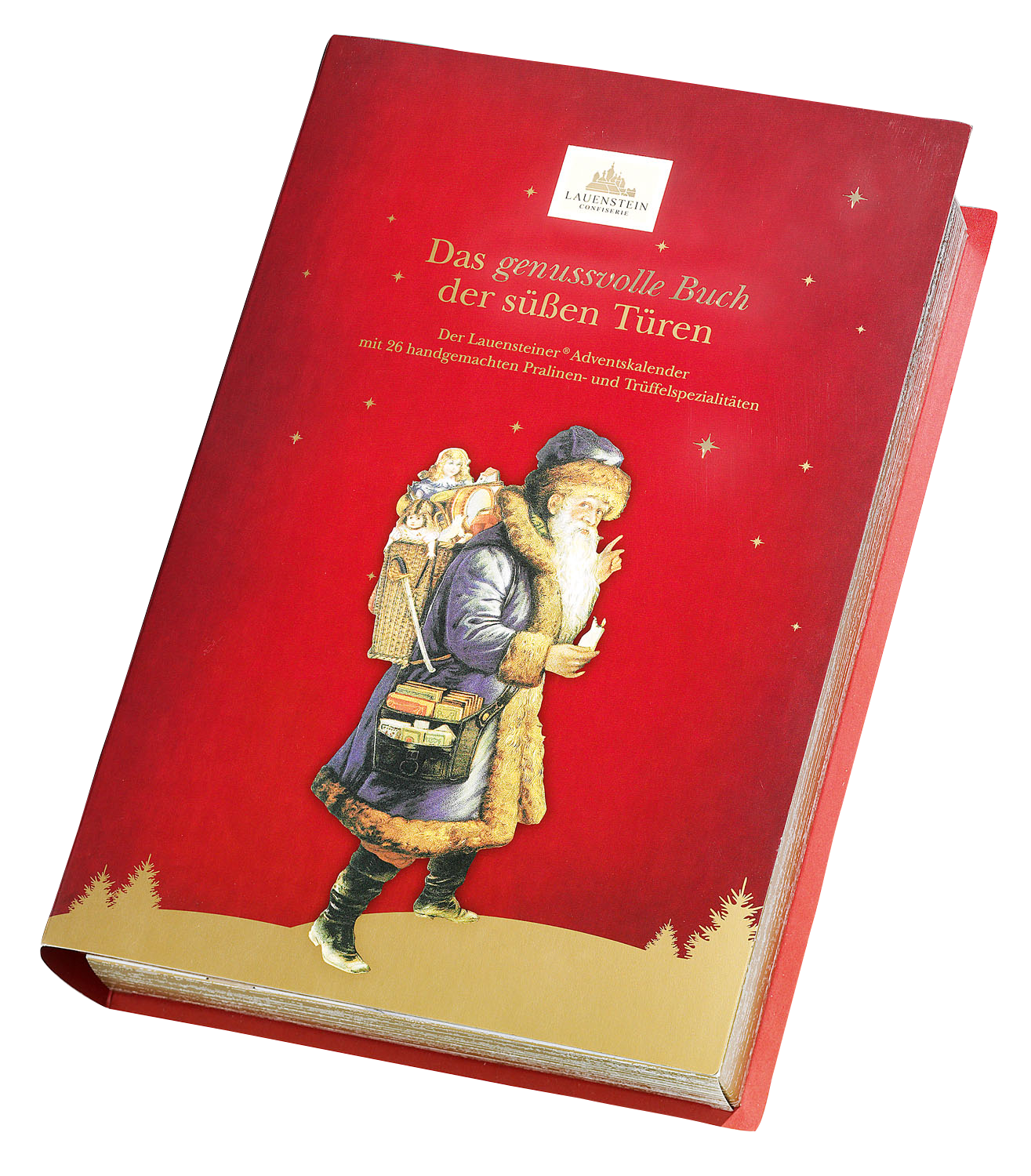 Versüßen Sie sich die Vorweihnachtszeit mit diesem großen Adventskalender in Buchform zum dekorativen Aufstellen: 24 Trüffel und Pralinen aus der Confiserie Lauenstein. Hergestellt aus reinen, erlesenen Rohstoffen und Zutaten höchster Qualität. Die Confiserie Lauenstein erzeigt nur allerfeinste handgefertigte Pralinen, frisch zubereitet mit besten, natürlichen Zutaten - seit Jahren ein "Muss" für Genießer.